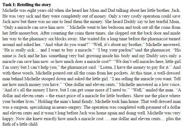 这篇专四口语真题讲述了一个关于亲情、信念、奇迹的故事。虽然不是每个人的生命力都有奇迹,但是只要有努力和信念,一切总不会那么糟糕,比如过级,哈哈。一起来看这篇真题吧。